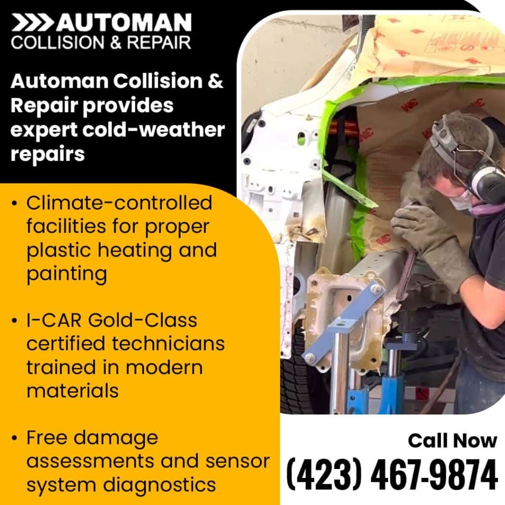 Contact Automan Collision & Repair LLC at (423) 467-9874 or email [email protected] for winter bumper damage assessment. We provide free estimates and work with all insurance companies. Our facility at 114 Industrial Rd. in Johnson City serves the local area with over 30 years of experience.
